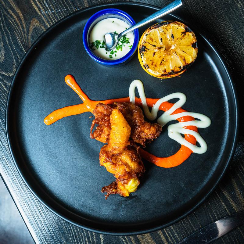 Lobster Tail, Saffron Tempura, Honey Lemon Aioli, Grilled Lemon